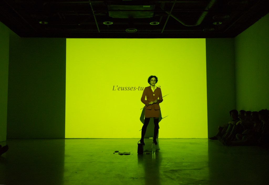 La performance s’appuie sur les métaphores poétiques que je propose à travers mes propres poèmes comme alternatives à la romantisation du viol, ainsi que deux personnages qui la structurent, deux sœurs, chacune figure de femme puissante dans des paradigmes très différents : la businesswoman et la sorcière. Cette proposition est aussi bien exutoire qu’une mise à l’épreuve des spectateurs.