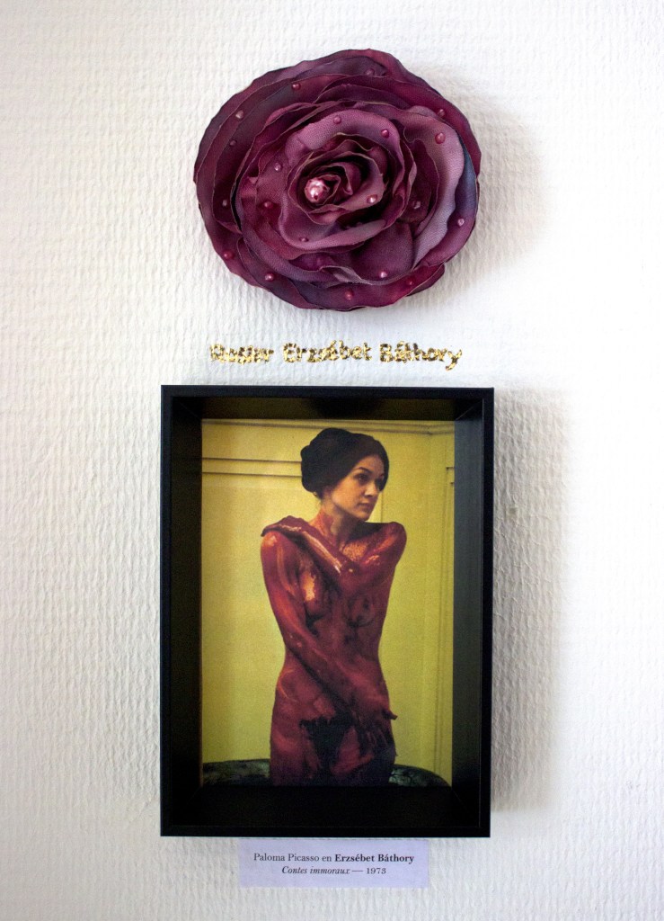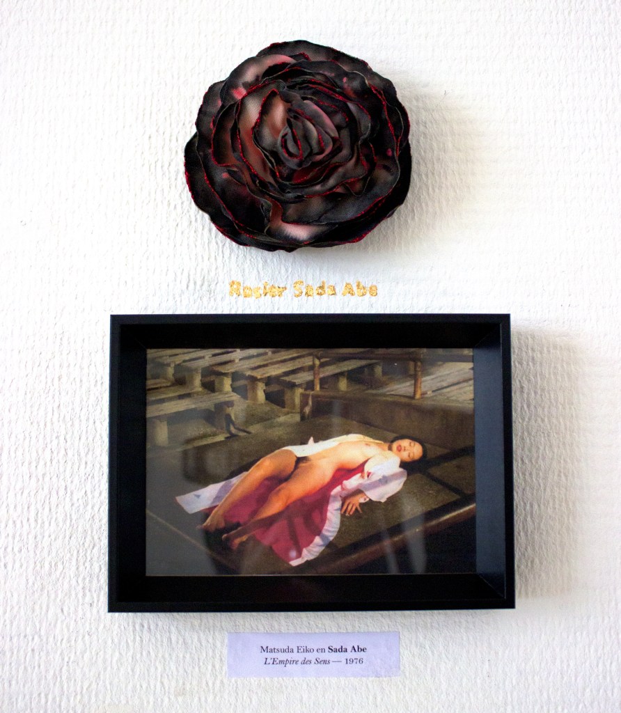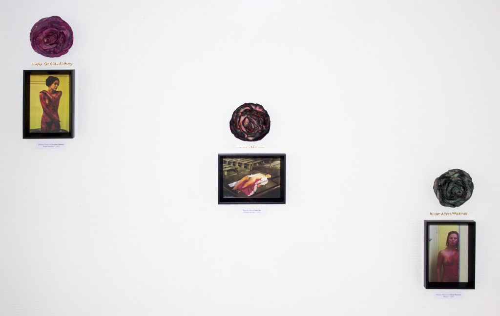 Roseraïe est une installation de cadres et de roses synthétiques, colorées et cousues à la main. Ces roses sont des spécimens de variétés imaginaires de rosiers, qui portent les noms de meurtrières connues ; d’Elizabeth Bathory à Aileen Wuornos en passant par Sada Abe, esquissant une roseraie personnelle, loin de l’habituelle romantisme des roses et de leur association traditionnelle aux femmes.
